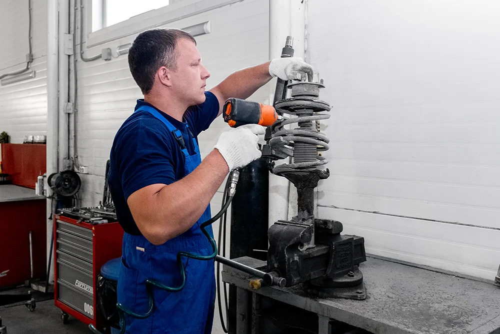 Осмотр пружины, опоры и пыльника на предмет повреждений или износа.